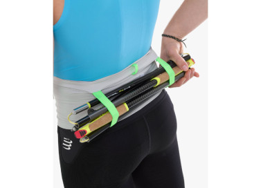 Bastões dobrados podem ser travados no cinto em seções menos técnicas, graças a fitas de silicone. Porta dorsal integrado, para que você nunca precises de te preocupar com os pinos de segurança novamente.