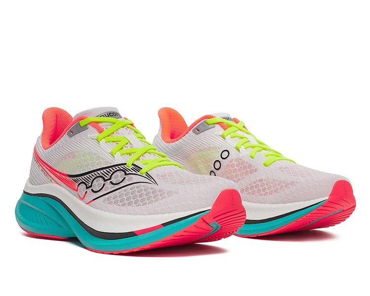 As Saucony Endorphin Speed 5 estão desenhados tanto para os treinos diários como para as corridas em asfalto. A cobertura de malha, muito respirável, conta com um design integrado com a entressola e a sola para conseguir uma adequada sustentação para os pés enquanto corres. A espessa entressola conta com as tecnologias SPEEDROLL, que proporciona propulsão e movimento para a frente do pé sem esforço adicional, e PWRRUN PB, que é sinónimo de amortecimento dinâmico e responsivo. Características: