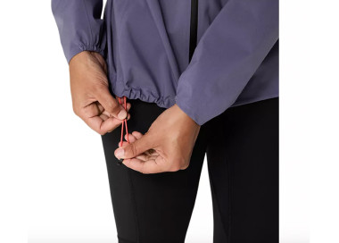 Há também um cordão de ajuste que ajuda a manter o capuz no seu lugar quando estás em movimento.