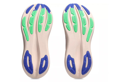 A entressola apresenta uma combinação de amortecimento FF BLAST PLUS e tecnologia PureGEL. Estes componentes criam uma experiência de amortecimento leve e suave que confere a sensação de estar a aterrar nas nuvens.