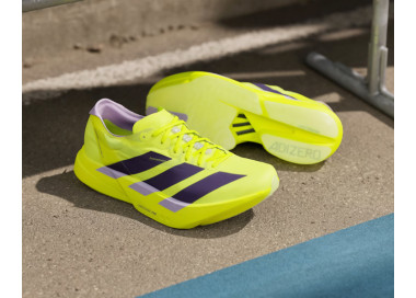 A coleção Adizero Adios Pro representa o auge da saga Adizero Racing, destacando-se pelo seu domínio no mundo do running. A Adios Pro 4 incorpora varões de carbono ENERGYRODS 2.0, que melhoram a transição do calcanhar à ponta, proporcionando uma experiência de corrida mais fluida e eficiente. A sua entressola apresenta um novo perfil curvado que otimiza a economia de corrida, enquanto a tecnologia de espuma ultraleve de dupla camada LIGHTSTRIKE PRO oferece uma amortização excecional, permitindo aos corredores manter a energia durante quilómetros.