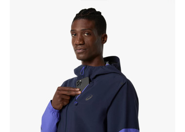 O casaco hidrófugo METARUN WATERPROOF é dos casacos mais avançados da coleção de corrida da ASICS. É funcional quando estás a correr e pode ser facilmente despido e guardado no bolso do peito durante a corrida.