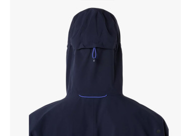 Este casaco foi criado para correr em condições climatéricas adversas, atuando como um escudo contra o tempo chuvoso. Tem um capuz ajustável com uma viseira integrada, permitindo um ajuste seguro e menos distrações.