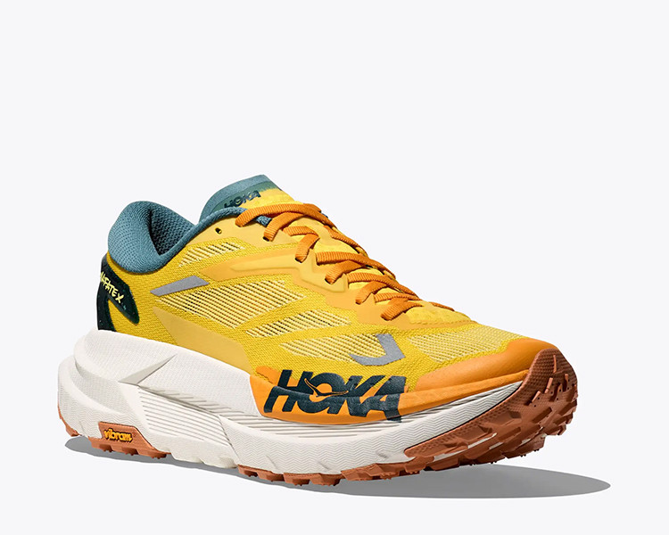 As HOKA Mafate X são o novo titã do trail. Criadas para enfrentar esforços de longa duração, combinam uma amortização superior com um chassis de espuma de dupla densidade e uma camada superior de PEBA para uma sensação ultrassuave. A sua placa de fibra de carbono bifurcada adiciona um extra de propulsão, ideal para manter o ritmo em terrenos exigentes. A parte superior tecida ultraleve melhora a respirabilidade e a drenagem, enquanto a sola Vibram Megagrip com recortes em forma de vagem garante uma passada estável e fluida em qualquer tipo de terreno.