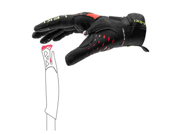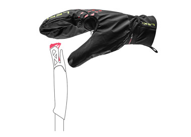 As pontas dos dedos também foram reforçadas com silicone para proporcionar uma boa aderência em superfícies rochosas. O sobreguante integrado no pulso protege contra mudanças bruscas de tempo e fornece isolamento térmico adicional. Características: