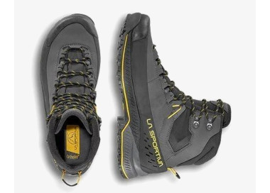 As La Sportiva TX5 Evo Mid GORE-TEX são um calçado técnico de cana média concebido especificamente para entusiastas de trekking e aproximação que enfrentam terrenos exigentes. A sua confeção em couro nobuck de alta resistência combina-se com uma membrana GORE-TEX que assegura impermeabilidade total face à chuva e ao barro, mantendo uma respirabilidade ótima em todos os momentos. Graças ao seu design ergonómico e ao seu sistema de atacadores clássico, oferecem um ajuste preciso que protege o tornozelo sem sacrificar a mobilidade, sendo uma opção fiável e confortável para longas jornadas na montanha.